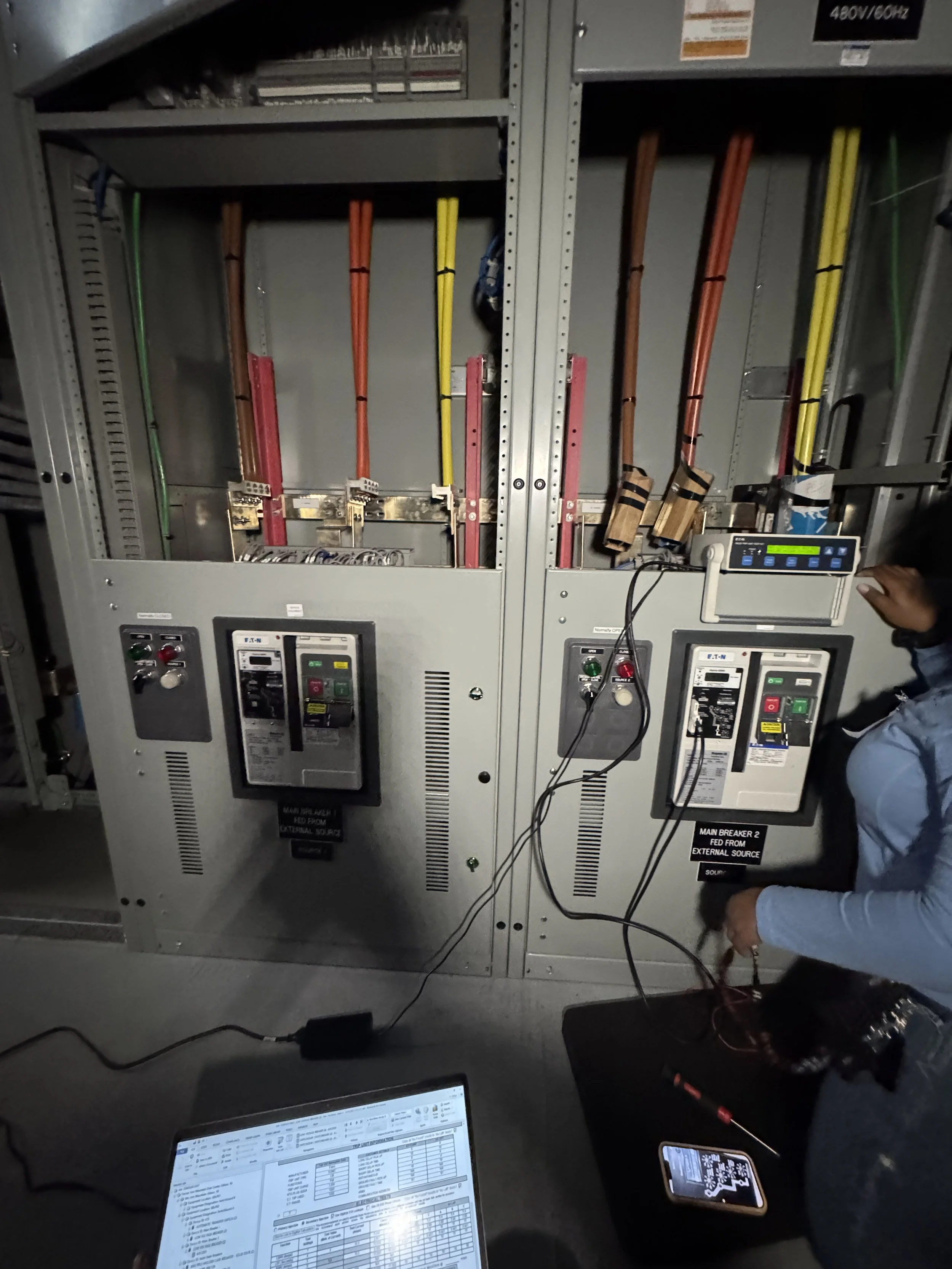 I was able to build on that foundation by exploring more complex systems and understanding how individual components interact within a complete power distribution network. I worked more closely with variable frequency drives (VFDs), automatic transfer switches (ATS), and integrated switchgear systems, gaining insight into how power is controlled, transferred, and protected in critical environments. Rather than simply observing equipment in isolation, I focused on how these systems respond to real world conditions such as load changes, outages, and commissioning requirements.